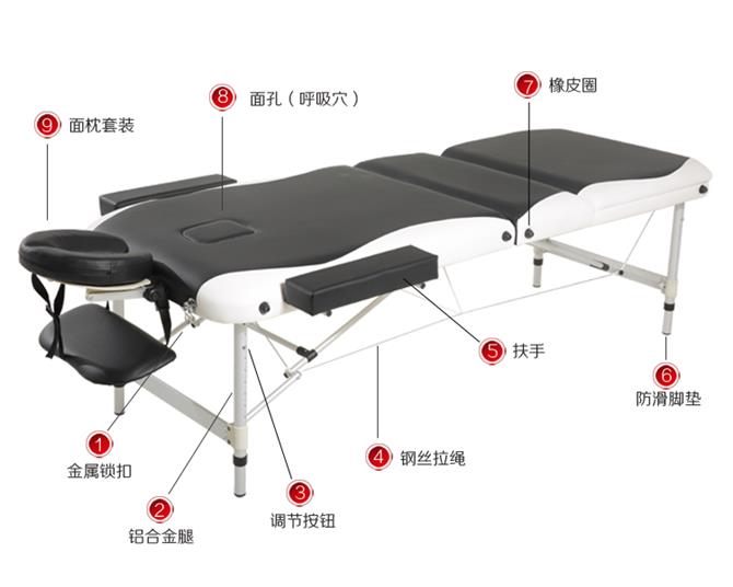 鋁制折疊按摩床三折叠 Aluminum Portable massage table with head board adjustable