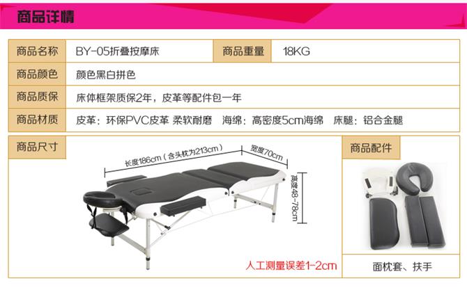 Aluminum stamd鋁制折疊按摩床主要原料:鋁合金腳,優質PVC 5cm厚高密度海綿規格