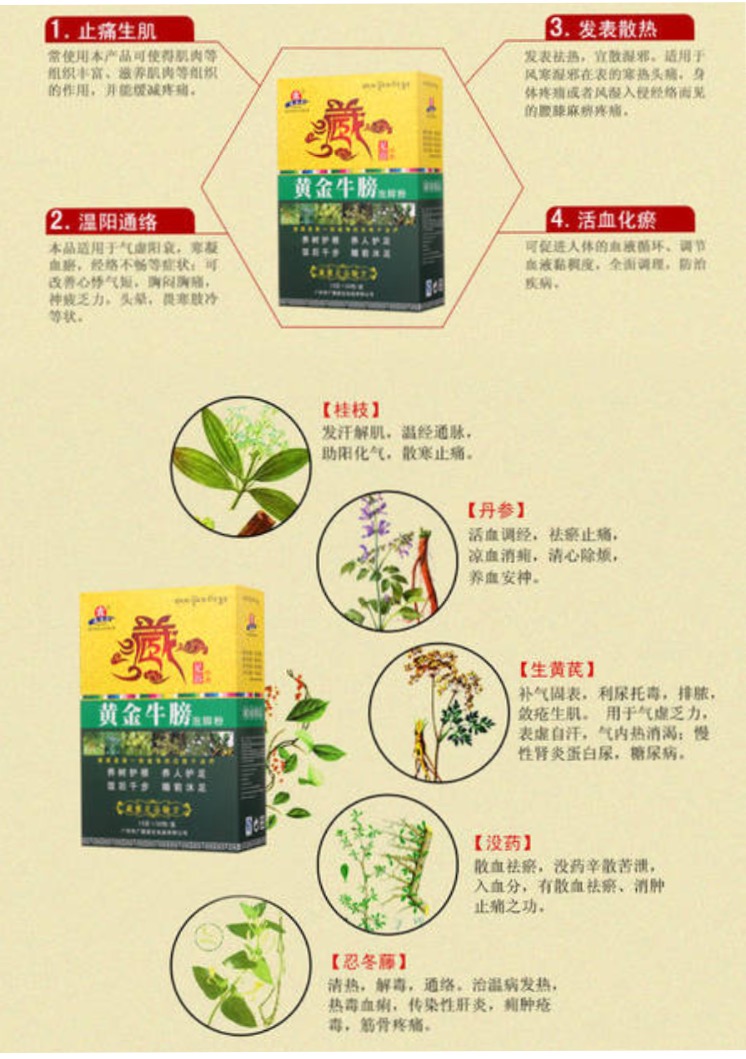 【成份】:上等孜然芹,刺參,高山龍膽,蛇床子,大黃,藏木通,肉桂,黃花紫堇等多種名貴中草藥。