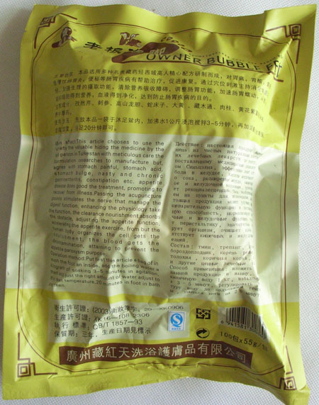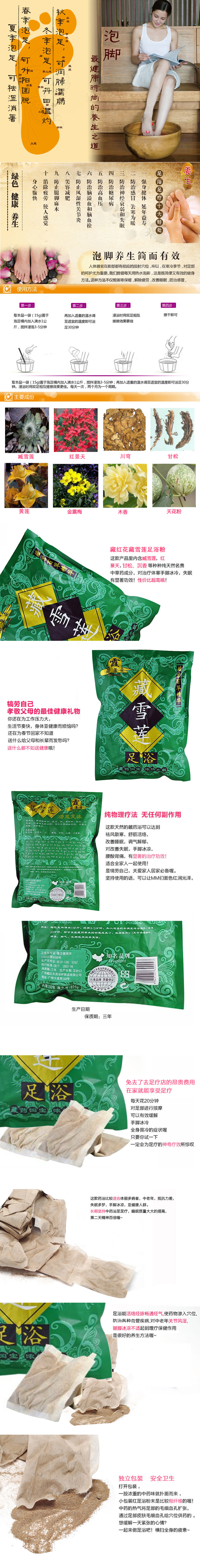 【保質期】:三年【用法】每包先用沸水1公斤,浸泡攪拌3-5分鐘,再加入溫水2-4公斤,浴足20分鐘,即可享受藏藥帶來的舒服享受了。連續使用3-7天可清除腳汗、腳臭、腳氣,長期使用效果更好。